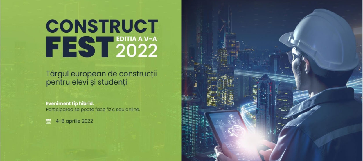 Text: UTCB organizează în perioada 4 și 8 aprilie 2022 evenimentul ConstructFEST 2022 – Târgul internațional de construcții pentru elevi și studenți.